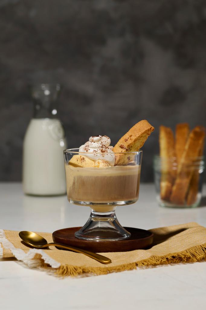 2. To serve affogato, divide ice cream between two small bowls. Top with whipped cream and sprinkle with espresso powder. Pour espresso over just before enjoying.