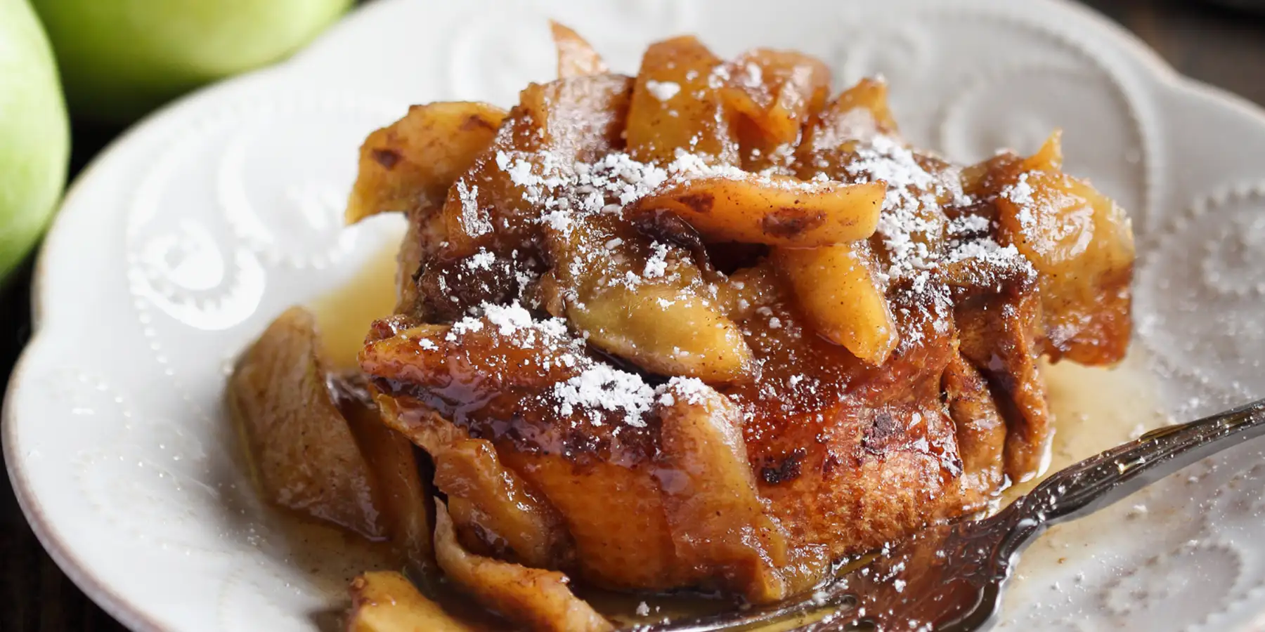 - Add half of the bread. Top with apples.