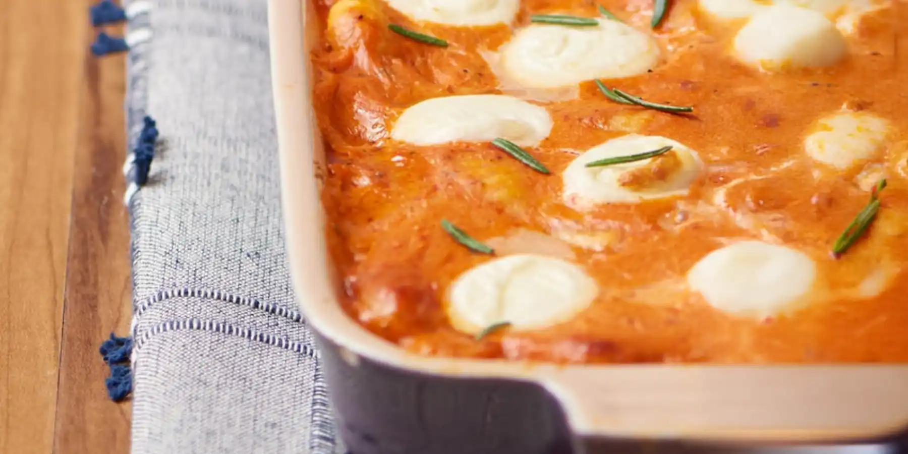 - Toss cooked gnocchi with 2 cups of sauce and pour into a prepared baking dish.