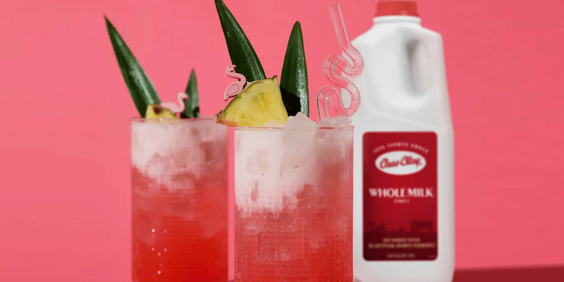 - Add a splash of milk and garnish with a pineapple wedge. Enjoy!